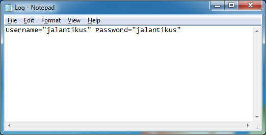 - Kamu lihat di desktop kamu ada notepad baru dengan nama log, ketika dibuka akan berisi email dan password yang kamu ketik